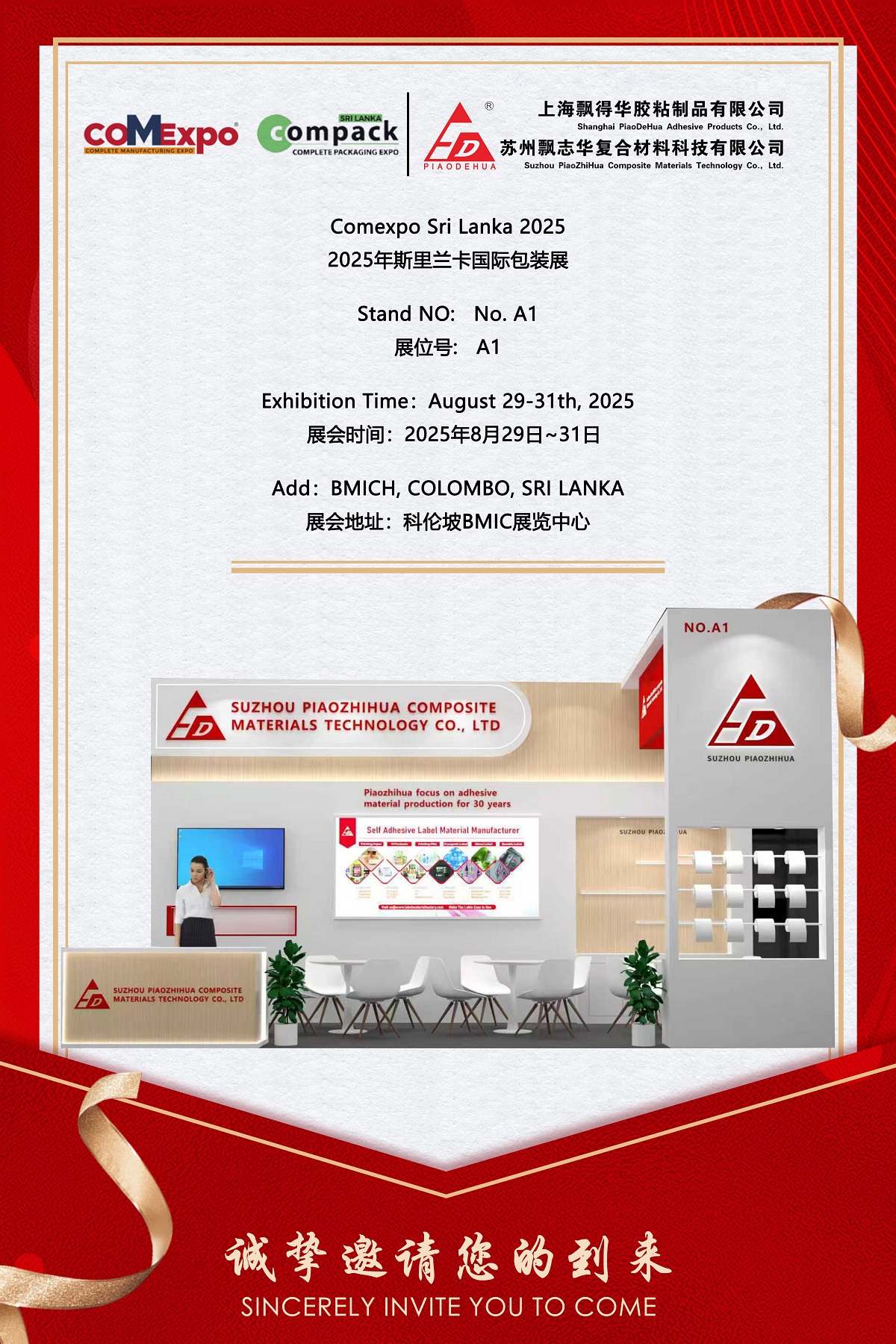 পিয়াওজিহুয়া শ্রীলঙ্কার কলম্বোর বিএমআইসিএইচ -এ ২৯ থেকে ৩১, ২০২৫ সালের আগস্টে অনুষ্ঠিত দক্ষিণ এশিয়ার অন্যতম প্রভাবশালী আন্তর্জাতিক প্যাকেজিং প্রদর্শনী কমেক্সপো শ্রীলঙ্কা ২০২৫ -এ অংশগ্রহণের ঘোষণা দিয়ে সন্তুষ্ট। 30 বছরেরও বেশি দক্ষতার সাথে আঠালো উপকরণগুলির শীর্ষস্থানীয় প্রস্তুতকারক হিসাবে, পিয়াওজিহুয়া তার উদ্ভাবনী স্ব-আঠালো লেবেল সমাধান এবং বুথ নং এ 1 এ উন্নত সংমিশ্রণ উপকরণগুলি প্রদর্শন করবে। সংস্থাটির লক্ষ্য দক্ষিণ এশিয়ার বাজারে এর উপস্থিতি আরও জোরদার করা এবং শিল্প অংশীদারদের সাথে আরও গভীর সহযোগিতা বাড়ানো।